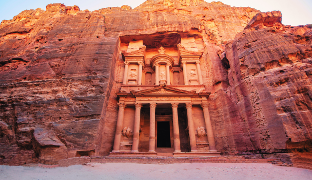 Conozca el maravilloso país, Jordania. El itinerario le lleva a la espectacular ciudad de Petra, la ciudad Rosa, donde hace más de 2.000 años los nabateos ubicaron la capital de su imperio a lo largo de 500 años, esculpiendo admirables templos y tumbas en las montañas rosadas y utilizando sistemas avanzados agrícolas y de conducción del agua. Además de poder adentrarse en el desierto de Wadi Rum, magnífico desierto de arenas rosadas, que posee un encanto especial proporcionado por los macizos graníticos que la naturaleza ha modelado con formas caprichosas. El Mar Muerto es el lugar más bajo de la tierra, más de 400 metros por debajo del nivel del mar y todavía a día de hoy conserva las mismas propiedades curativas y sanadoras que hace más de 2.000 años. Un SPA natural para disfrutarlo. Con propiedades beneficiosas para todo tipo de pieles. También disfrutará de la capital, Amman, ciudad de un encanto especial y con mucho que ofrecer.